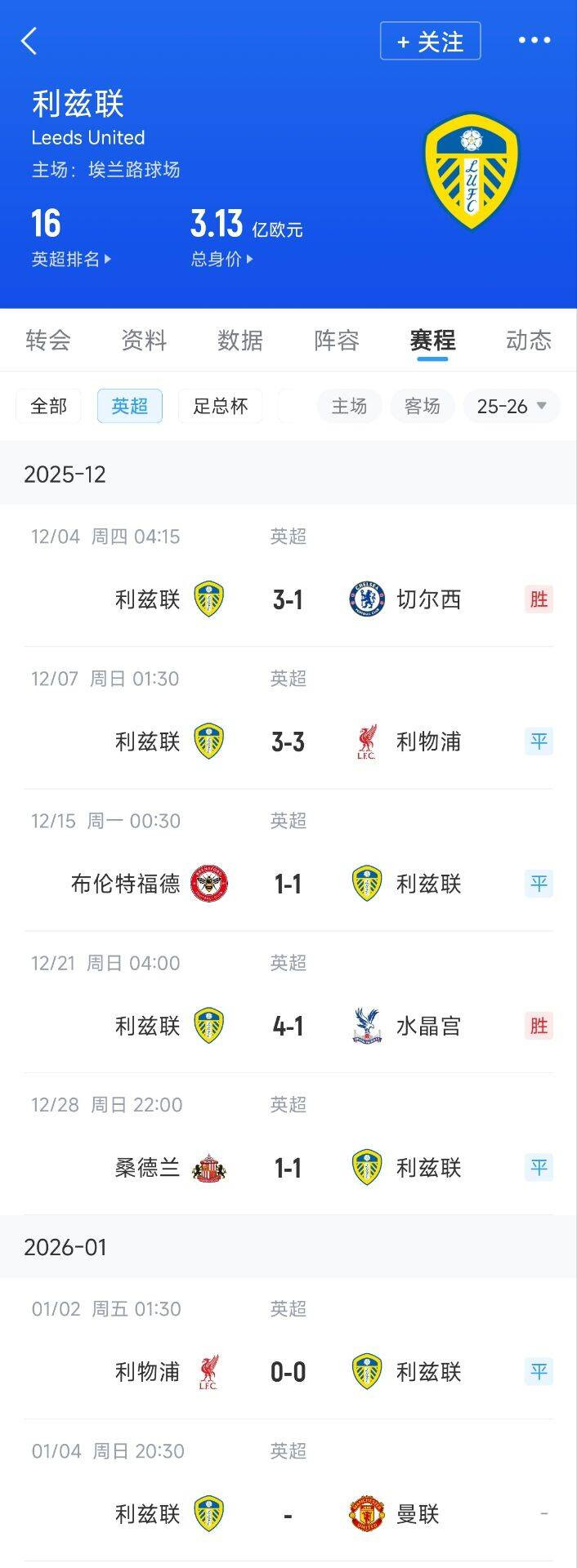 算作保级队,白玫瑰利兹联近6轮英超获得2胜4平拿到10分,战绩绝顶亮眼。更穷苦的是,他们的敌手含金量透顶:切尔西(胜)、利物浦(2平)、布伦特福德(平)、水晶宫(胜)、桑德兰(平)。