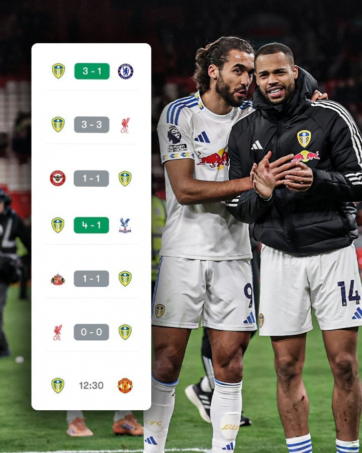 接下来,利兹联将镇守主场迎战红魔曼联,演出“玫瑰德比”。